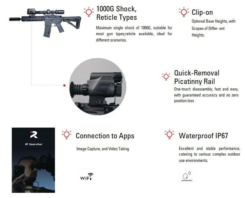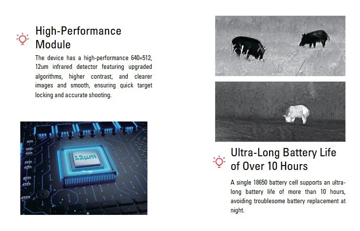 XS TIWS is a high performance multifunctional thermal camera. Based on advanced image processing algorithms, this device shows clear targets and smooth images. Besides it features a 64GB memory, digital magnetic compass, image capture, video recording, and connections to the app.